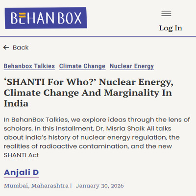 I research on environmental, medical and regulatory neglect along India’s Nuclear Fuel Cycle namely Tummalapalle Uranium Mine and Mill and Kudankulam Nuclear Power Plant as reified by the epistemology (or, simply knowledge system) of global nuclear safety regime. I also focus on radioactive contamination of scrap metal market in Mayapuri, Delhi. Recently, I’ve begun attending to digital (nuclear) energetics to make sense of a world with small modular reactors and data centres.